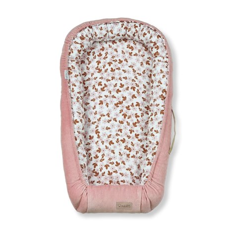 Kokon niemowlęcy Retro kwiatki to produkt stworzony z wysokiej jakości tkanin — satyny i weluru bawełnianego. Został zaprojektowany z myślą o komforcie i bezpieczeństwie niemowląt. Delikatne kwiatowe wzory, nawiązujące do stylu retro, dodają mu uroku i elegancji. Wykonany z tkaniny satynowej, kokon jest miękki i delikatny w dotyku, co zapewnia wygodę podczas snu i odpoczynku malucha. Welur bawełniany, zastosowany na zewnątrz, przynosi dodatkową warstwę ciepła i komfortu. Boki kokonu wypełnione zostały miękką oraz antyalergiczną kulką silikonową. Zastosowana w dnie specjalna pianka poliuretanowa zapewnia dziecku lepszy komfort podczas odpoczynku. Kokon ma bezpieczny system regulacji rozmiaru sznureczkami, zabezpieczony dodatkowo materiałową klapą, która uniemożliwia dziecku wplątanie się w niego.